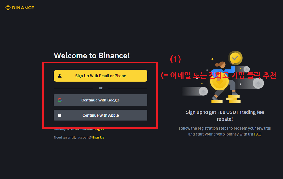 (아래 내용은 바이낸스 회원가입 (수수료할인 적용) 하는방법에 대해 작성하였습니다.)